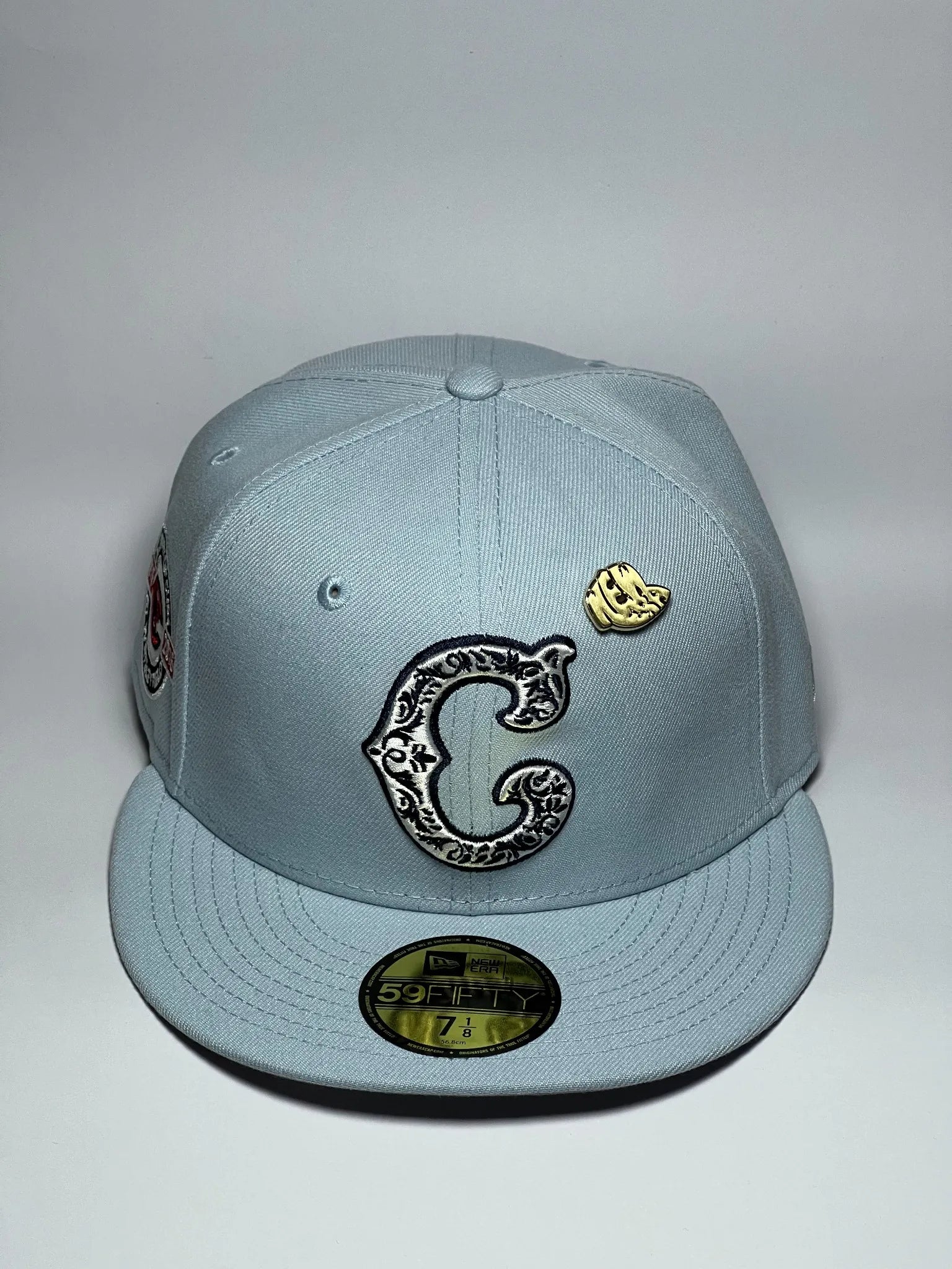 Un cappello che non passa inosservato. Il New Era "Coops Seasonal" 59FIFTY unisce eleganza e stile urban in un mix perfetto per chi vuole distinguersi. La colorazione azzurro cielo dona un tocco fresco e contemporaneo, mentre il logo "C" ricamato in rilievo con dettagli ornamentali aggiunge un carattere unico e ricercato.